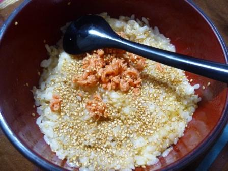 (ごはん:320kcal たまご:85kcal 鮭フレーク 10g:22kcal