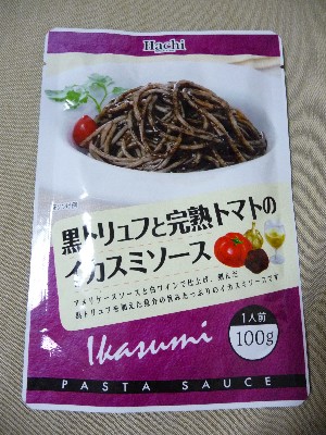 (フィットチーネ〔生〕、黒トリュフと完熟トマトのイカスミソース〔118kcal〕、玉ねぎ、ケチャップ、バター)