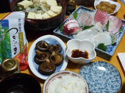 刺身:160kcal (まぐろトロ、はまち、たい、たこ、いかそうめん)