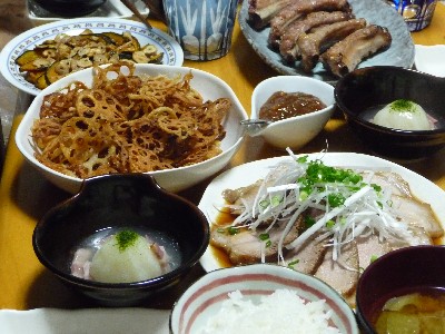 野菜の素揚げ:110kcal (れんこん、かぼちゃ、にんにく)