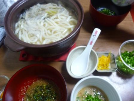 鶏団子鍋のだしでうどんすき風。
