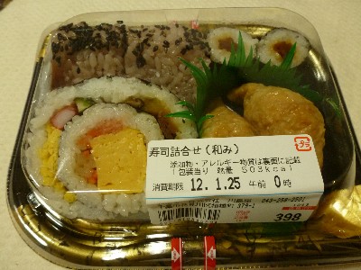 (太巻、赤飯おにぎり2個、いなり寿司2個、干ぴょう巻1個 ※干ぴょう巻1個あげた)