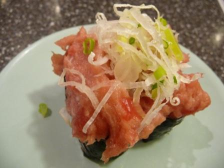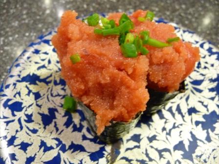 ねぎとろ軍艦だと思って取ったら、まさかの明太子大盛り(爆)