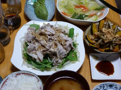 豚肉の冷しゃぶ風:263kcal (豚こま肉、もやし、ルッコラ、ポン酢、ごまだれ)