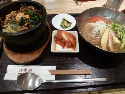 純豆腐2回、参鶏湯1回を経て、久しぶりにハーフ&ハーフ(石焼ビビンバ&冷麺、韓国惣菜2種)に戻る。