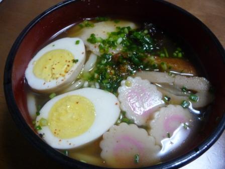 おでんの残りにめんつゆをプラスして、玉うどんを煮込んだ。