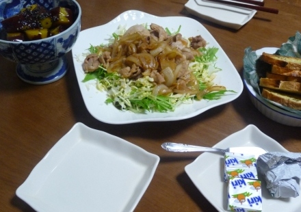 ガーリックトーストでさらににんにく摂取、おかずが少なかったのでクリームチーズを。