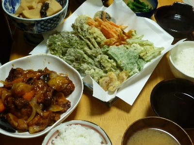 (たらの芽、葉わさび、人参、椎茸、玉ねぎ、新玉ねぎ、にんにく)