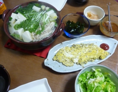 昨日の鯛の昆布締めの鯛と昆布からだしを取った寄せ鍋。ヘルシー。