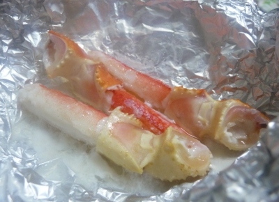 鍋に入れようかと言っていたカニはホイルに包んでストーブの上で焼いてもらった。