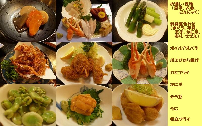 刺身盛合わせ:246kcal(まぐろ、平貝、ぶり、かに爪、さざえ、玉子)