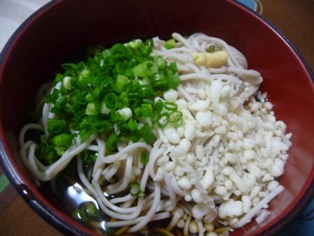 お出掛け前に茹でてくれたそば。