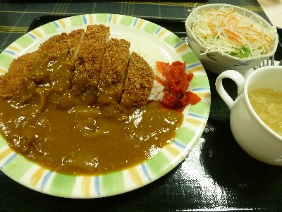 カツカレー:1075kcal(カツカレー、かき玉スープ、サラダ)