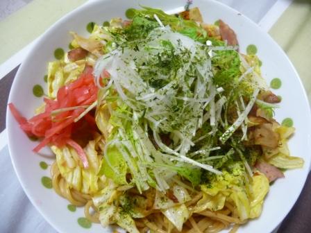 蒸し中華麺の代わりにスパゲティを使ってます。