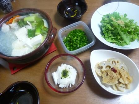 春菊はあまりにも立派だったので、ほかの野菜を混ぜずにドレッシングのみで。