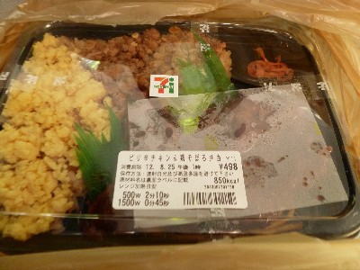 ピリ辛チキン&鶏そぼろ弁当:850kcal