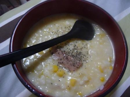 昨日のシチューにごはんを入れてリゾット風。