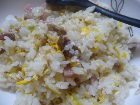 玉子・長ねぎでシンプルに。 煮豚の煮汁に浮いた天然ラードによる炒飯でした。美味しっ♪