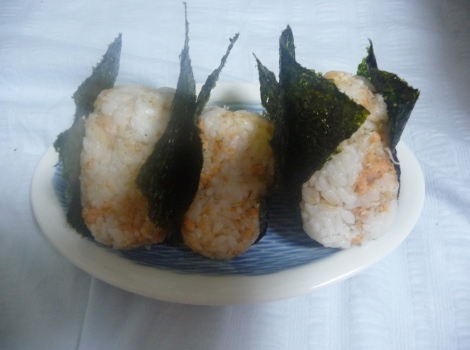 【鮭じゃこおにぎり】 ごはん / 鮭フレーク / ちりめんじゃこ / すりごま / のり