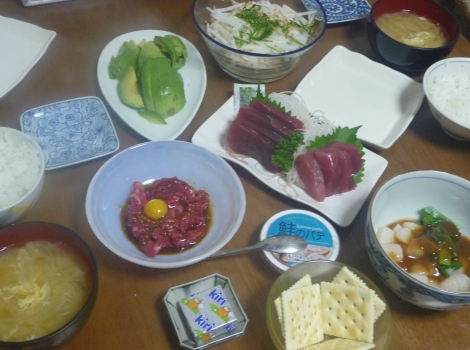 そのまま、わさびじょうゆをつけて。それと、ごはんとまぐろと合わせて海苔で巻いて食べた♪
