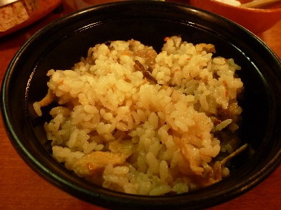 油揚げ入り。薄味なので、うどんやそばにプラスするにはいい具合のごはんです。