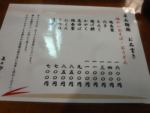 ちなみにそば・うどんメニューは