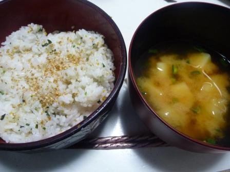ごはん、大盛り。 みそ汁の芋、多め。みかん、甘い。