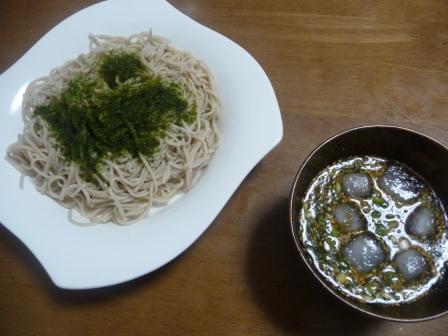 そばには青海苔をふりかけ、つゆには大量の氷・・・わさびを入れすぎた。