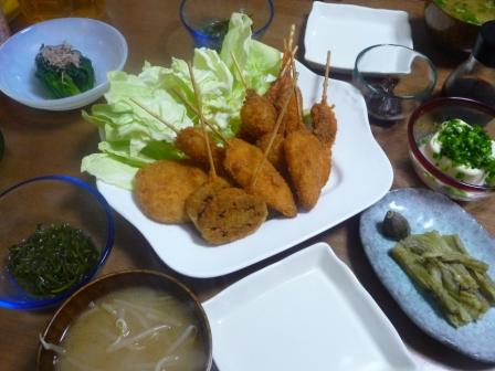 錦糸町のLIVINで買った串揚げがメイン。