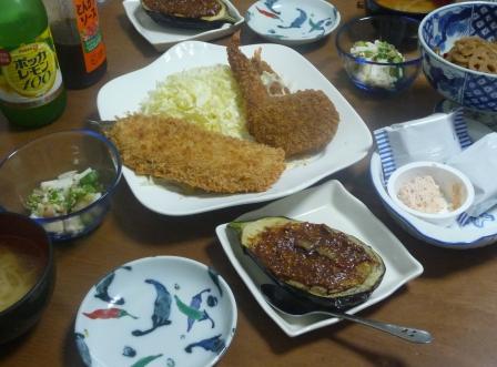 魚のフライは食べないので、エビフライとコロッケを食べた。