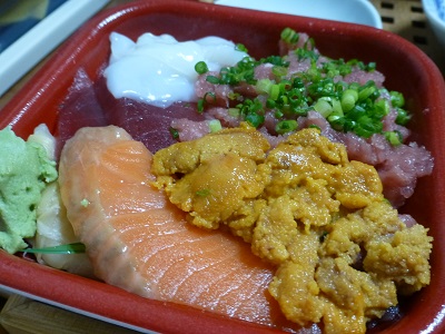 丼丸丼に魚河岸丼のウニをいただきました。