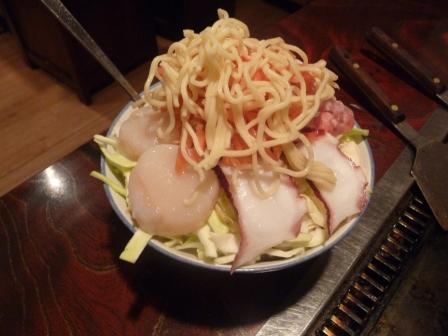 夢やもんじゃ豚・えび・たこ・ほたて・そば入り!