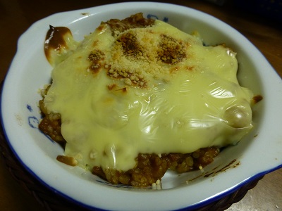 焼きチーズカレー(ごはん、カレー、スライスチーズ2枚〔56kcal/1枚当たり〕)