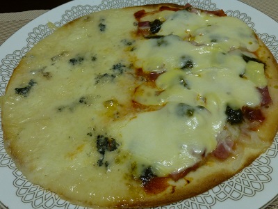 ピザ(ハム&モッツァレラ&オニオン、ゴルゴンゾーラ&モッツァレラ)