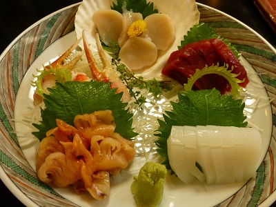 刺身盛合わせ(まぐろ、いか、赤貝、かに爪、ほたて)