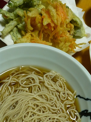 天ぷら盛り合わせ(人参と玉ねぎのかき揚げ、いんげん、ピーマン、にんにく)