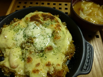 (ごはん、カレー、スライスチーズ、モッツァレラチーズ、パルメザンチーズ、パセリ)