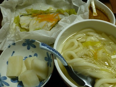 タラの酒蒸し(タラ、キャベツ、人参、セロリ、かぶ、自家製ポン酢)