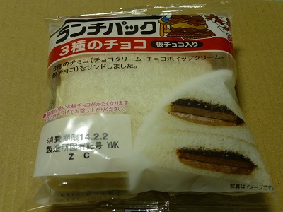 【ランチパック 3種のチョコ(板チョコ入り)】