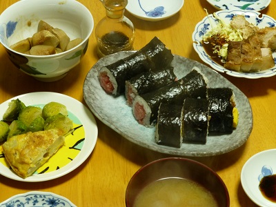 今年の恵方巻はうず潮巻ではなく『節分コラボ太巻』にした。