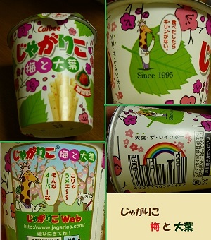 2012年のおいしそ梅と2013年のよろこぶ梅は食べている模様。 ほんのり梅(2008,2009)、つぶつぶ梅(2010)、うめぇ梅(2011)とかあったみたい。 そんなにしそは強く感じない。今までのやつよりも梅の酸味も控えめかなーと思った。 商品名が『梅と大葉』なので酸っぱいと想定して食べたから、もう少し酸味としその風味が強くてよかったなぁ。