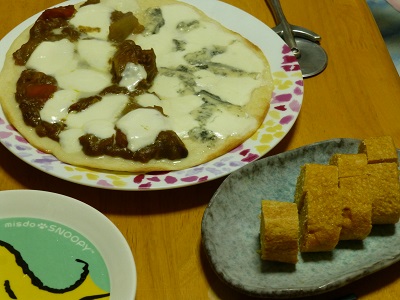 ピザソースやトマトソースだけでなく、カレーを乗せてみるっていうのは大当たりだった。