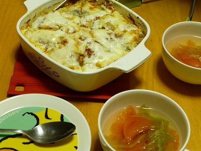 (パスタ[生シート]、ミックスチーズ、モッツァレラチーズ、自家製ホワイトソース、自家製ミートソース[ひき肉、トマト、ホールトマト、玉ねぎ、にんにく、オリーブ油、オイスターソース、醤油、砂糖、はちみつ...etc]、タバスコ)