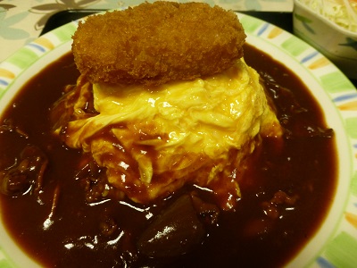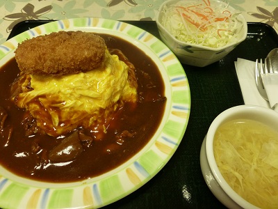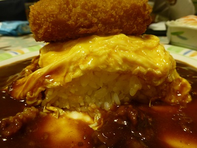中身が白いごはんだったのでオムライスにハヤシソース(デミ)って言うよりもハヤシライスにオムレツが乗ってるって感じだった。