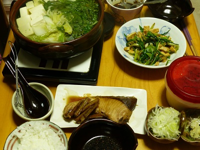 湯豆腐(木綿豆腐、白菜、春菊、つけだれ[ポン酢・長ねぎ・小ねぎ・唐辛子])