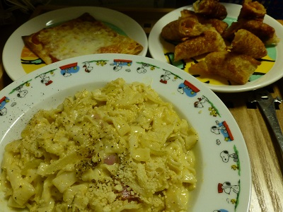 フィットチーネ、ピザ生地、春巻き風でした♪