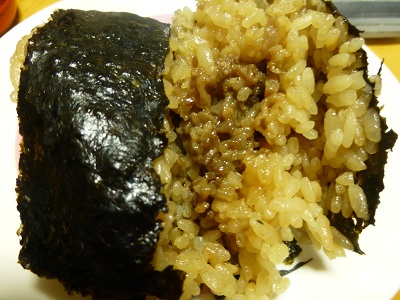 じっくり寝かせた本がえしで煮込み、まろやかな味わいに仕上げた牛肉煮を包んだ直巻おむすびです。御飯は牛肉煮の煮汁で炊き込むことで、具材のうま味が楽しめるように仕上げました。