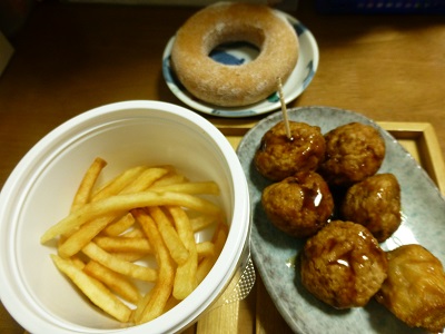 たこ焼とからあげ&フライドポテトは歌舞伎座の模擬店のお土産~