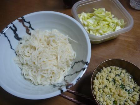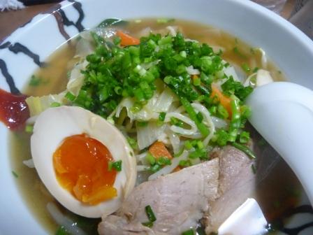 (サッポロ一番みそ、煮豚、煮玉子1/2、 キャベツ、もやし、玉ねぎ、