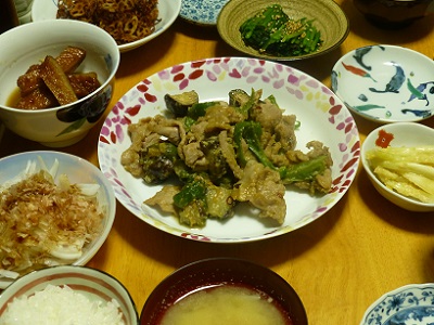 なすみそ炒め(豚肉、なす、ピーマン、調味料...)
